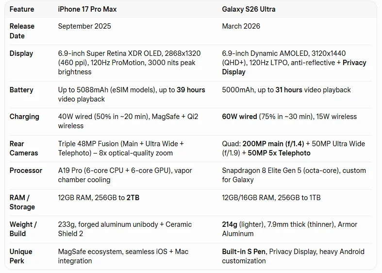 iPhone 17 Pro Max vs Samsung Galaxy S26 Ultra: Which 2026 Flagship Should You Actually Buy?