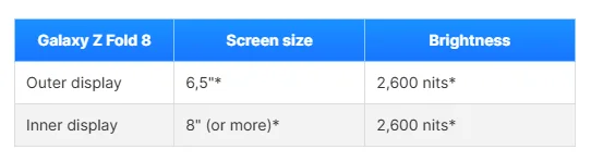 Size-wise, you are looking at an 8-inch inner display and a 6.5-inch outer screen. Both panels are rumored to hit a blinding peak brightness of 2,600 nits, so outdoor visibility won't be an issue. Interestingly, early CAD renders show the phone might actually be a tiny bit thicker this year (about 0.3mm thicker than the Fold 7). Why? That brings us to the best upgrade.