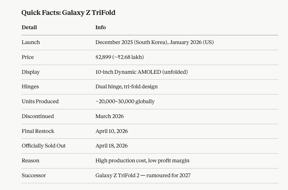 It is officially over. Samsung's Galaxy Z TriFold — the most ambitious foldable smartphone ever made — is gone. Not just out of stock. Gone for good.