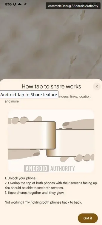 iPhone users always show off how they can share contacts just by bringing their phones together. Now, Android users will get to do the exact same thing. A new leak shows that a feature called "Tap to Share" is coming soon to Android devices.